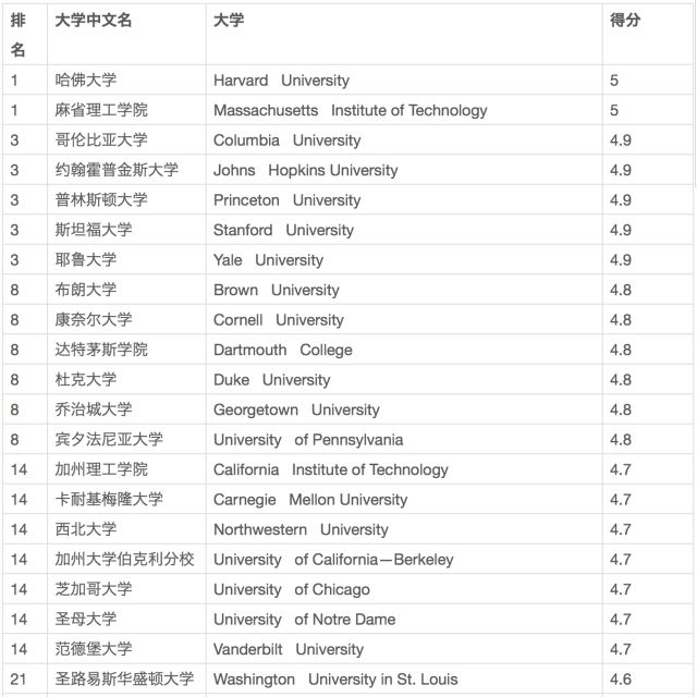 美國高中老師眼裏的美國大學Top100